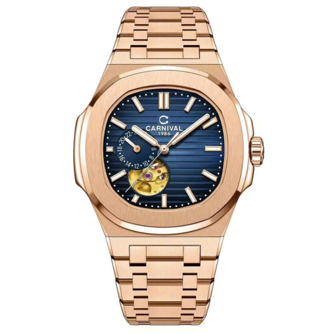 Đồng Hồ Carnival 8159G-VH-X (SKU: 8159G-VH-X) nổi bật với open-heart tinh tế, dây kim loại chắc chắn. Trang bị kính sapphire chống trầy, bộ máy automatic nhật (open-heart) vận hành ổn định, kháng nước 3 ATM phù hợp đi mưa/rửa tay hằng ngày.